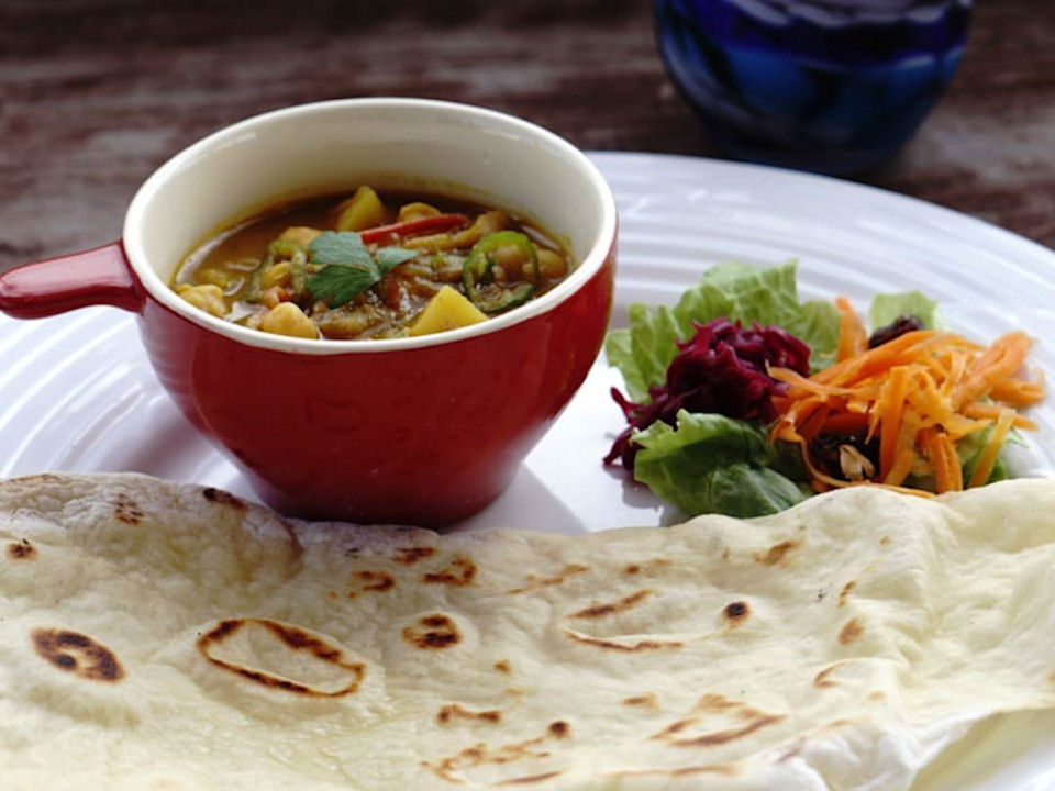 ひよこ豆カレーとナン+彩り野菜のピクルス |