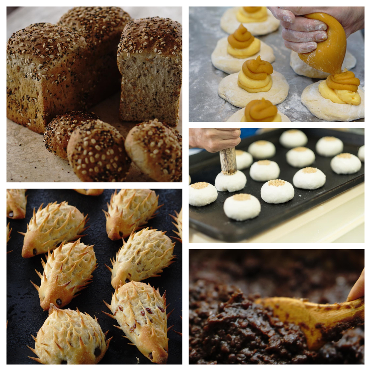 ★長時間発酵&天然酵母 15時間以上の低温長時間発酵で、パンの味わいをじっくり引き出しています。 飽きのこない、深みのある味わいに仕上げるために天然酵母の生地にこだわっています。 ★卵・牛乳・バター(一部)不使用 いろんな人に食べてほしいから、卵や牛乳は使っていません( 全商品の生地 )。アレルギーのお子さんにも安心です。 ★地元食材(黄金芋、津堅にんじん、もずく)と自家製フィリング 当店のフィリング( ジャムやあんこ、クリーム )は、すべて手づくり。黄金芋、津堅にんじんやもずくなど、地元の食材を使ったパンが季節に応じて並びます。 ★アレルギーや食事制限のある方は、ご要望に合わせてお作りすることも可能です。お電話でご相談ください。 |
