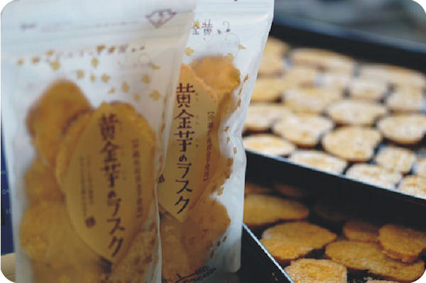 黄金芋のラスク 無添加・天然酵母の生地に地元の塩(ぬちまーす)を使用。素材にこだわった自慢のラスクです。 |